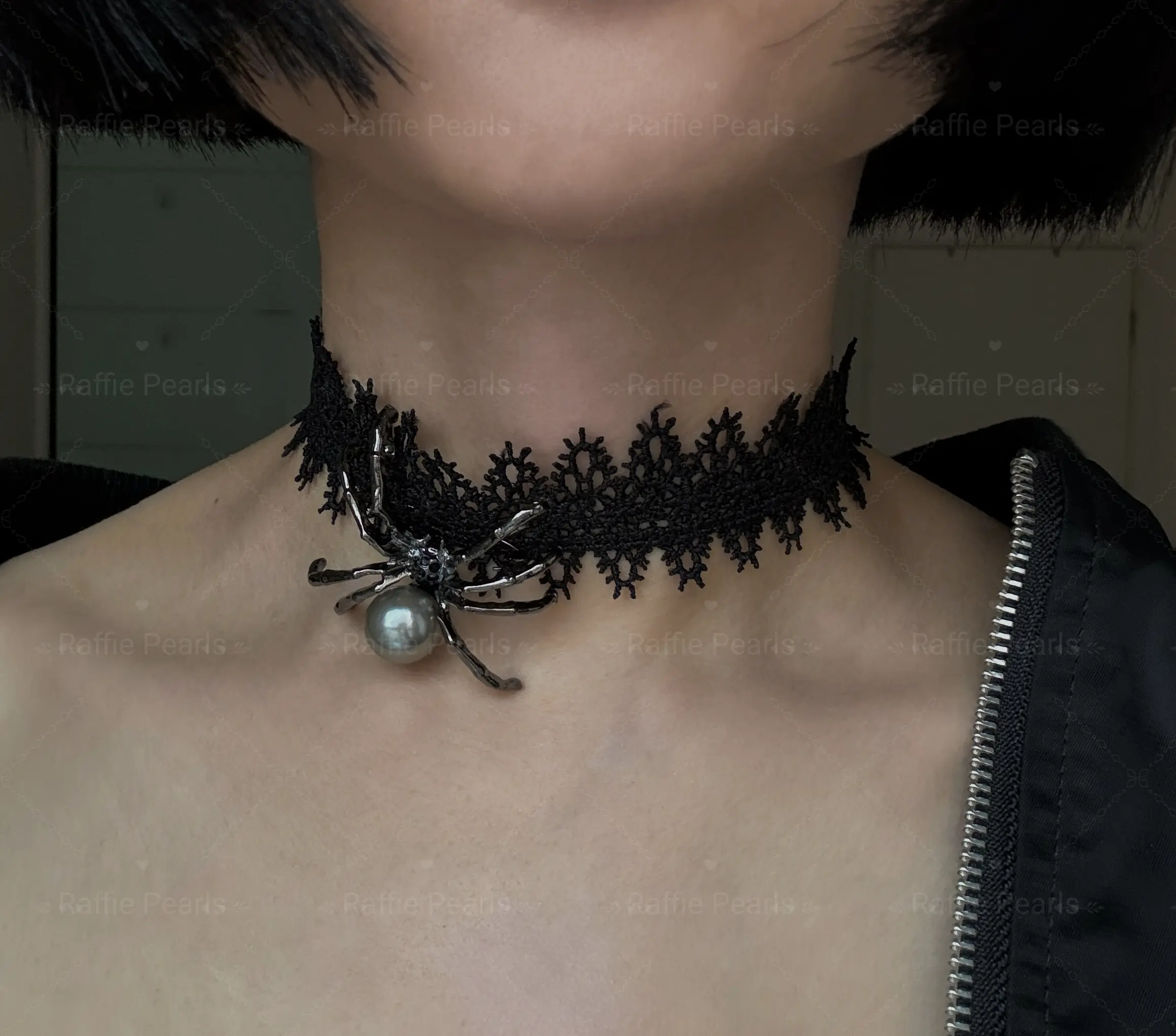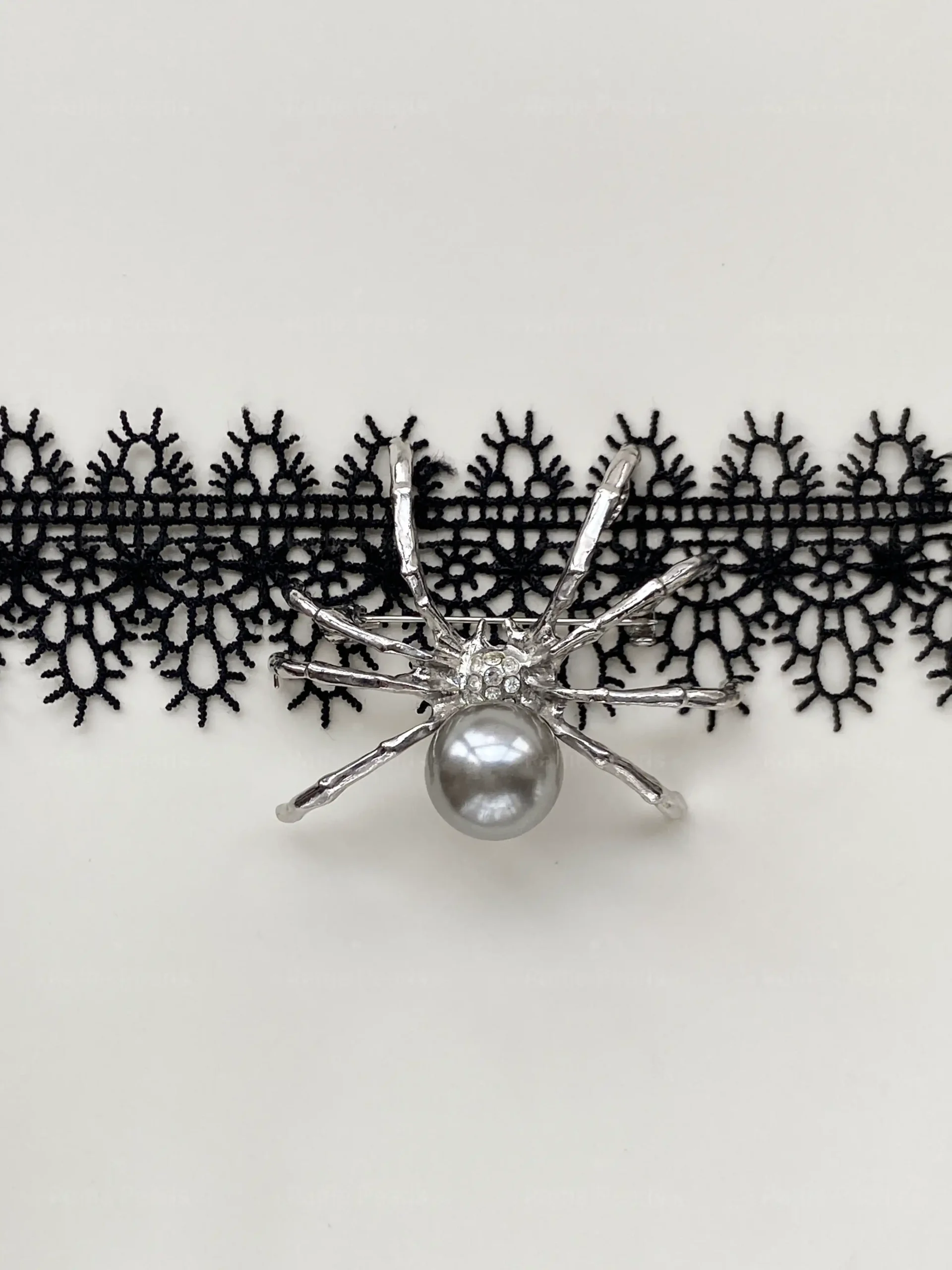 Meet the black choker pearl spider necklace, a statement piece that blends mystery, elegance, and a hint of gothic charm. Each spider necklace doubles as a brooch for more styling options. The spider setting comes in two tones—silver-white and dark gunmetal, both made in high-quality alloy for durability and shine. The spider’s rounded legs ensure a smooth touch that won’t prick your skin. The piece includes a 90cm x 3.2cm black lace strap, allowing it to be a choker or ribbon-style necklace—versatile enough for gothic outfits, festive Halloween looks, or creative styling like a tied bow.