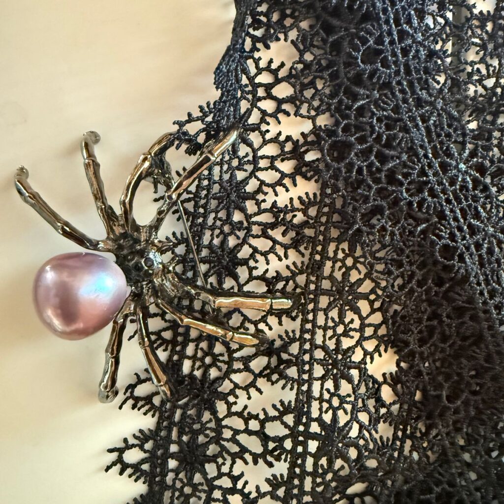 Whether worn as a black choker pearl statement or a versatile spider necklace / brooch, this piece embodies both elegance and edge. It’s a little treasure designed for those who dare to stand out. If you’re looking for fine Halloween jewelry, don’t miss out this piece!