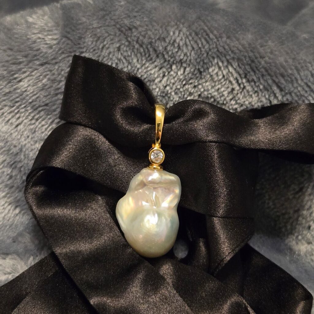 Baroque pearls are natural pearls formed in free, irregular shapes. Their uneven surfaces allow light to reflect in complex ways, often creating a deeper, more dynamic luster than perfectly round pearls. This expressive glow gives baroque pearls a modern, sculptural character.