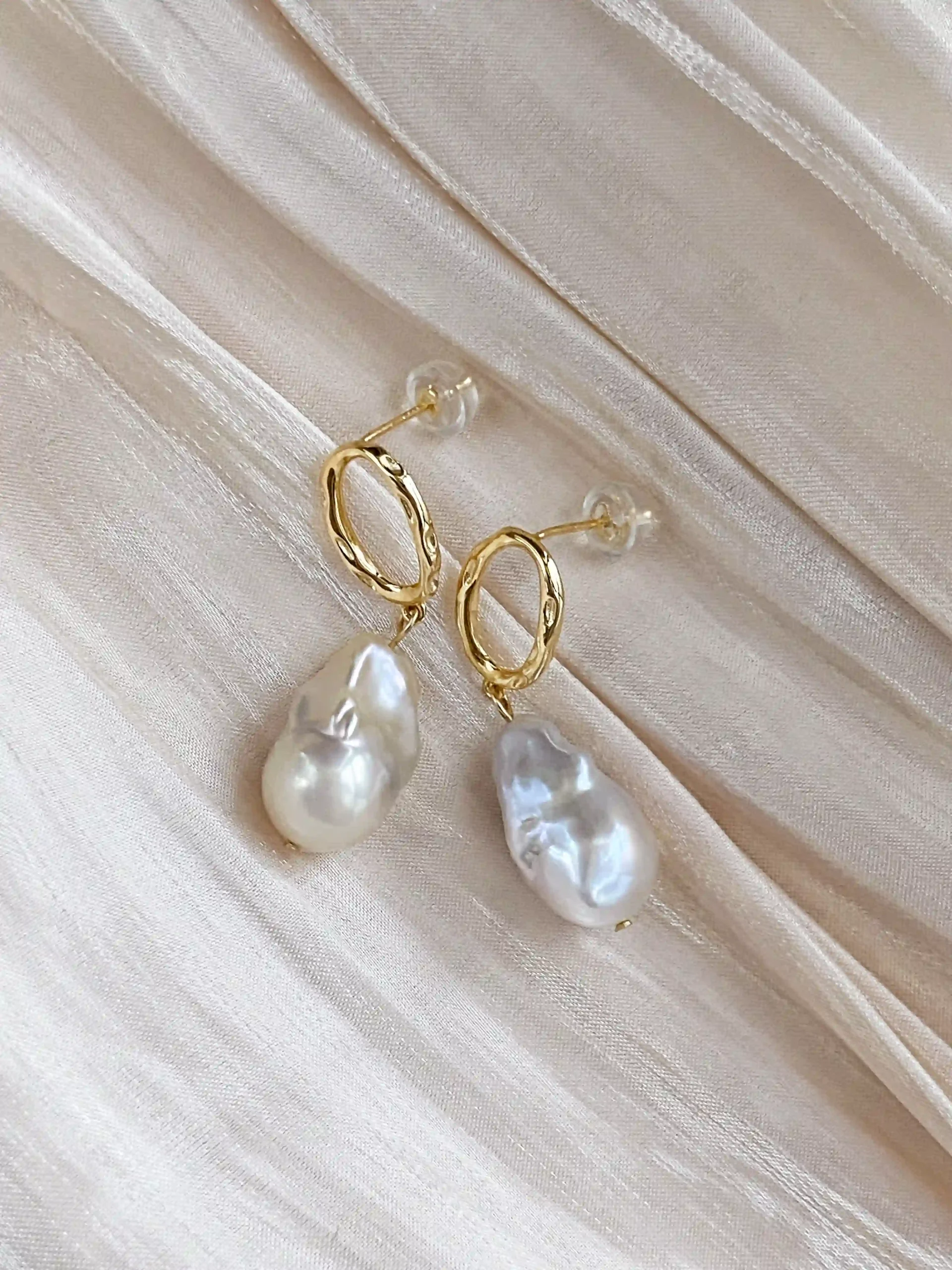 Design: Short-tail baroque pearls, minimalist hoops with texture