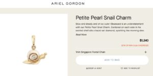 Snails often symbolize patience, grounding, protection and gentle progress- positive meanings that make a snail necklace a thoughtful gift as well as a personal talisman. Many designers have explored snail-themed jewelry, like Ariel Gordon’s pearl snail necklace.
