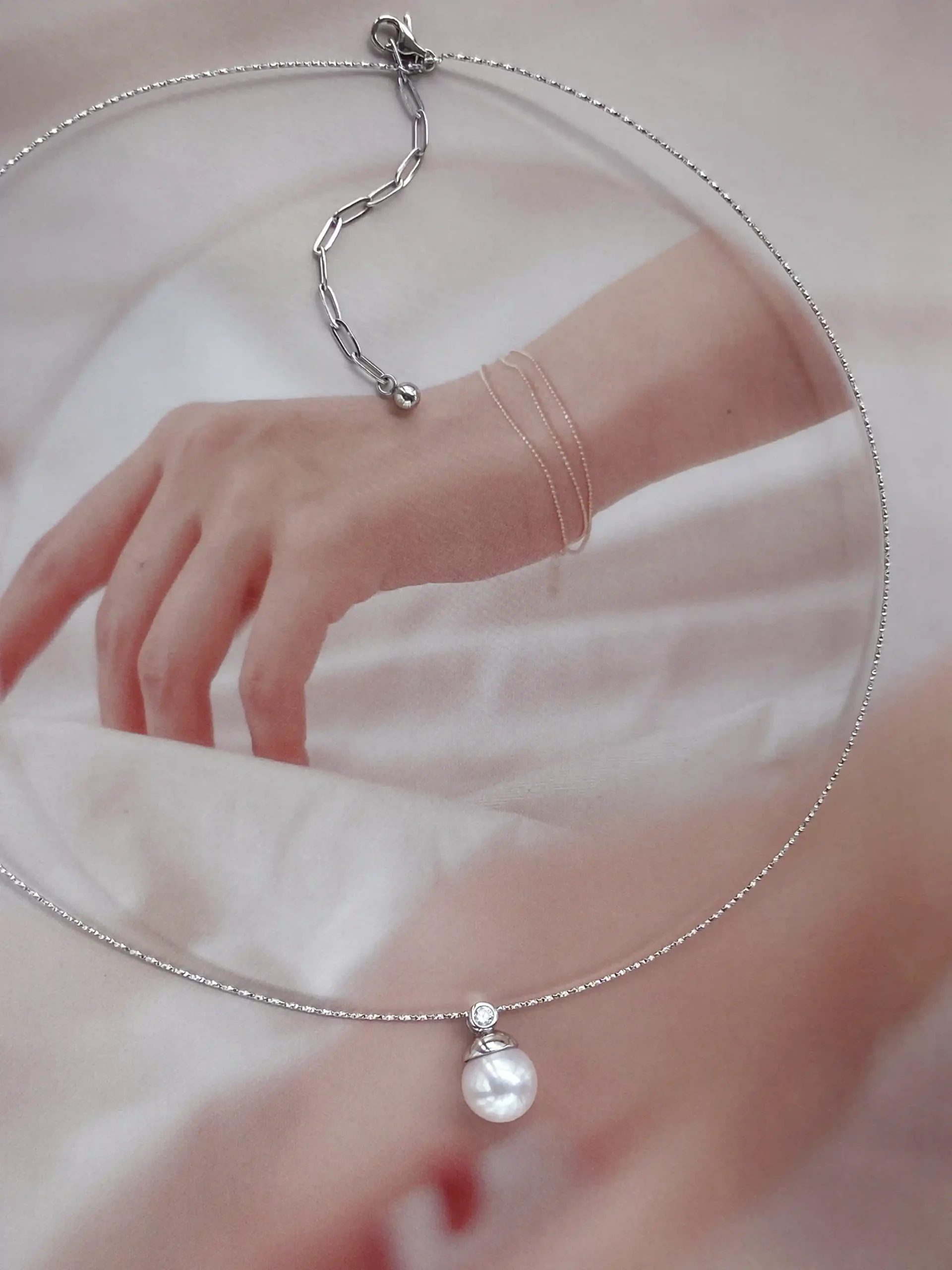 The interplay of luster from the pearl, the brilliance of the zircon, and the glitter of the engraved collar creates a dazzling yet minimalistic effect. The sliding pendant moves naturally when worn, adding subtle sparkle and making your neckline irresistibly eye-catching.