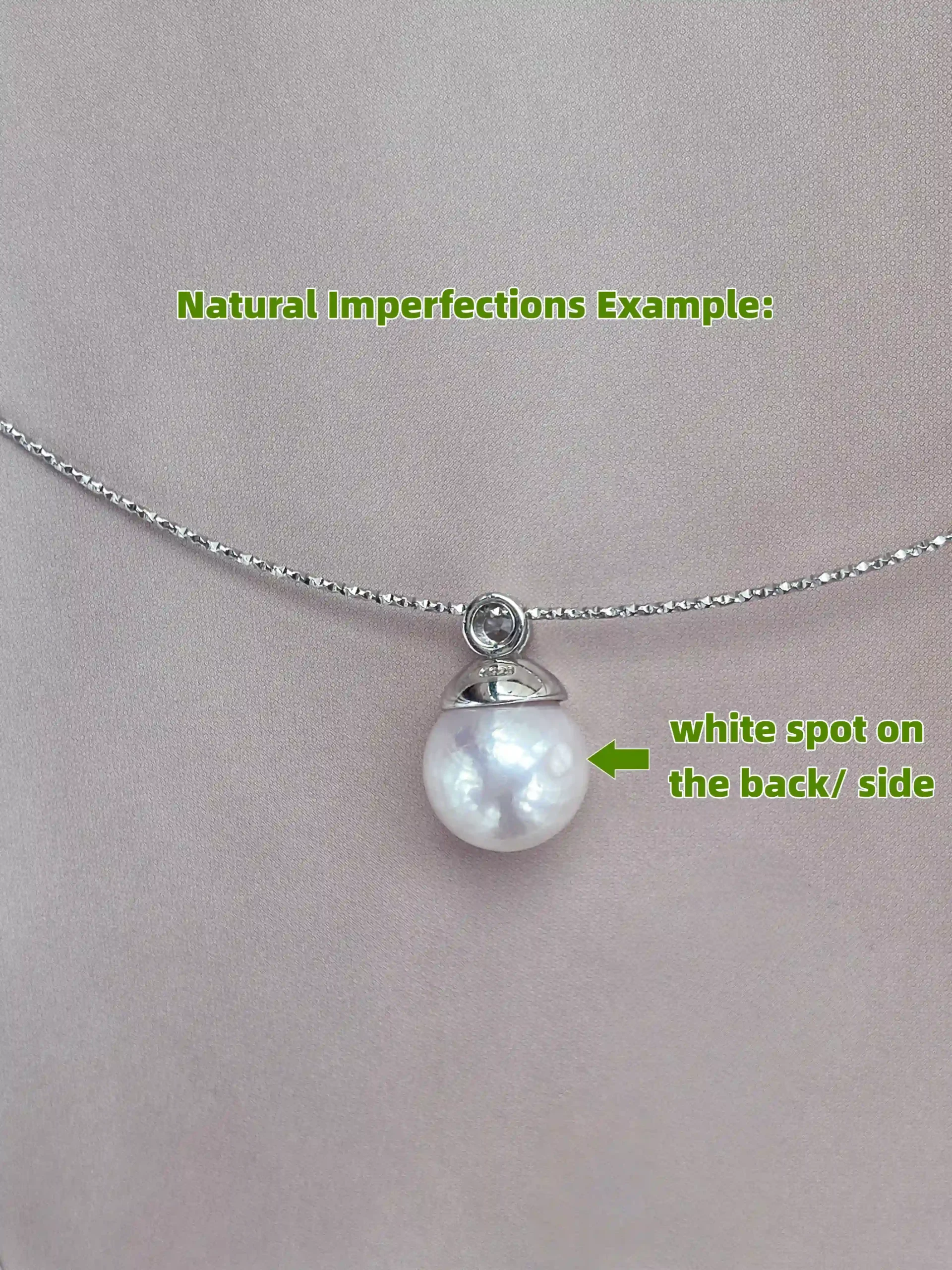To keep pricing fair while maintaining top beauty, pearls may show small natural imperfections on the back, base, or side of the pendant. Examples have been shown in product photos and these do not affect their glowing presence when worn.