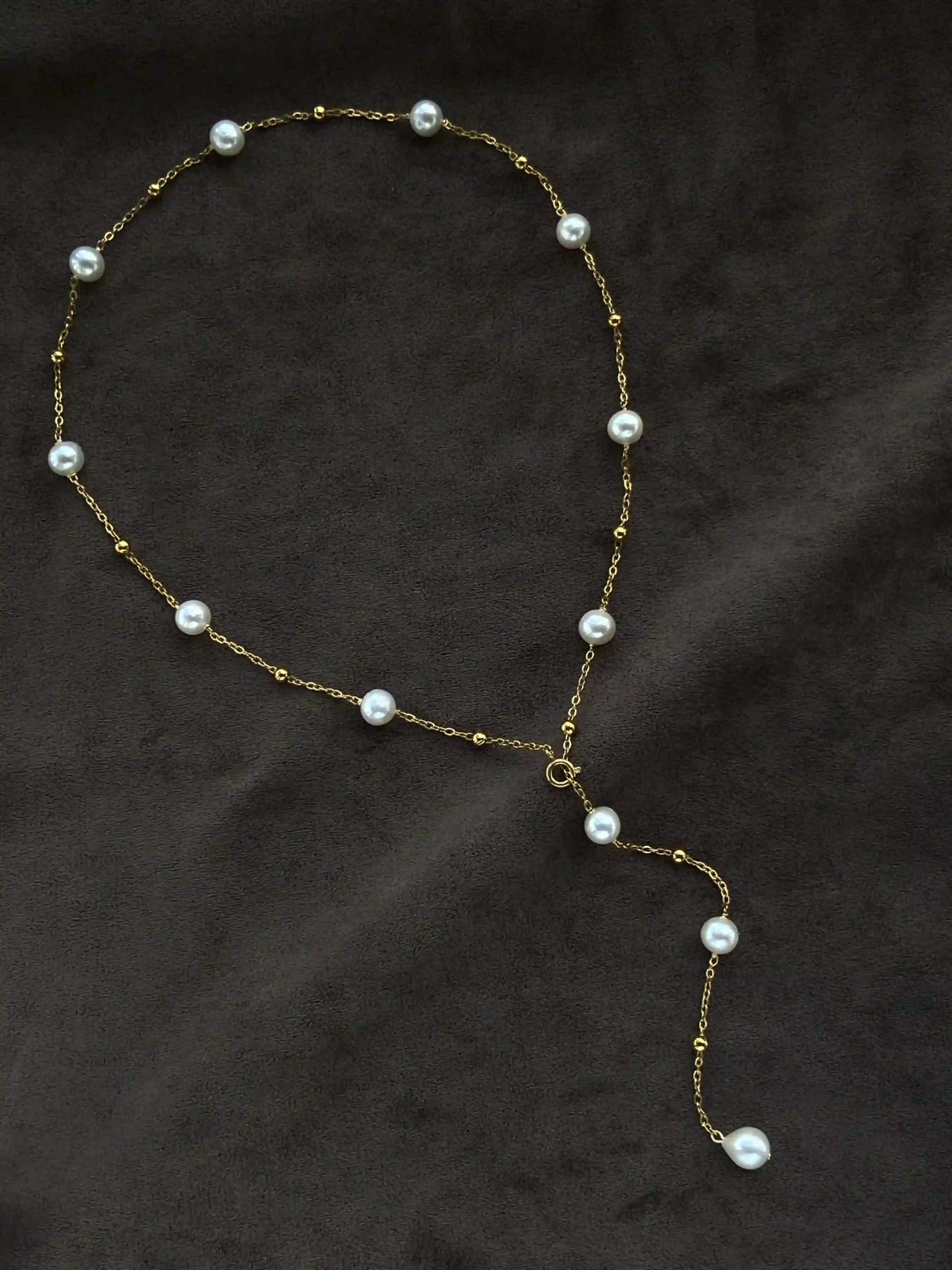 For a bolder statement, explore our ~8cm pearl station necklace with denser pearl spacing.